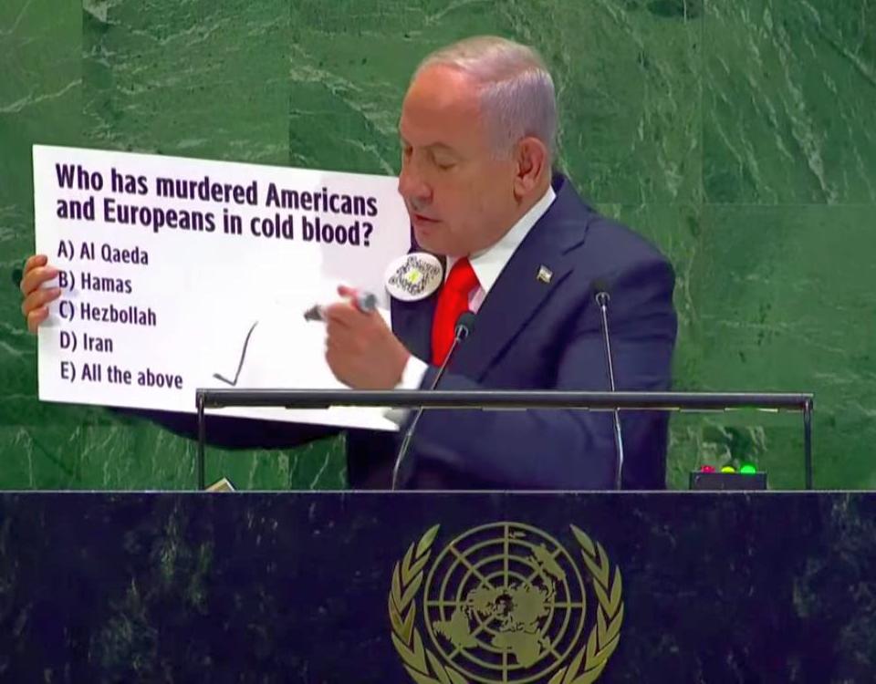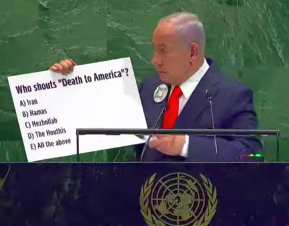 This annual New York Fall world leader jamboree at the UN saw the Israeli leader once again draw on a physical deck of cards.