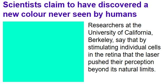 Here's the click-through enticement of recent 'discovery' for a supposedly hitherto unseen colour.