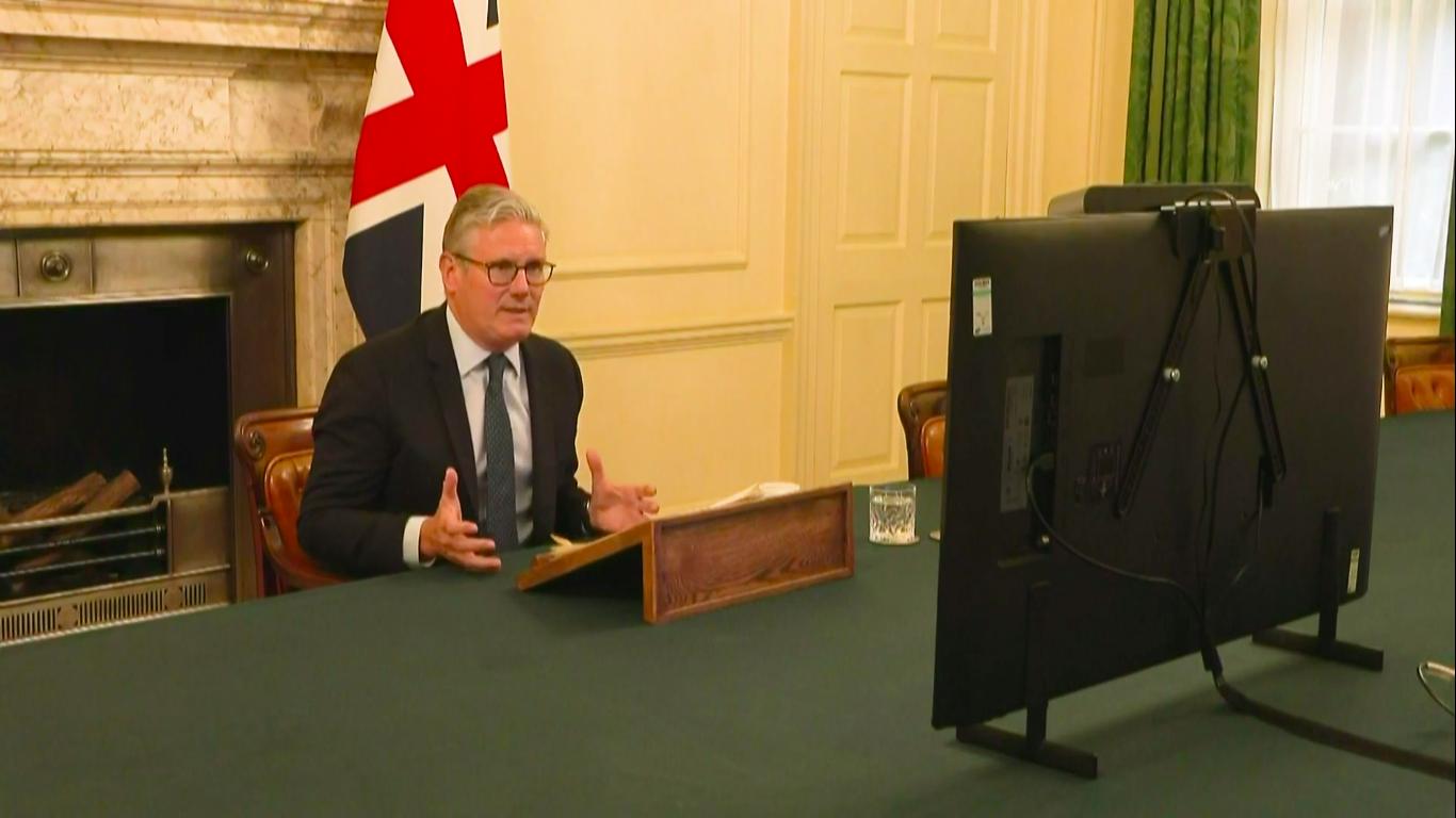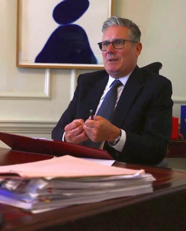 The above screenshot is from their "phase two launch" twitter video. It shows the Prime Minister. Seated at his desk. Wider angles show his black monitor, just off screen, left.