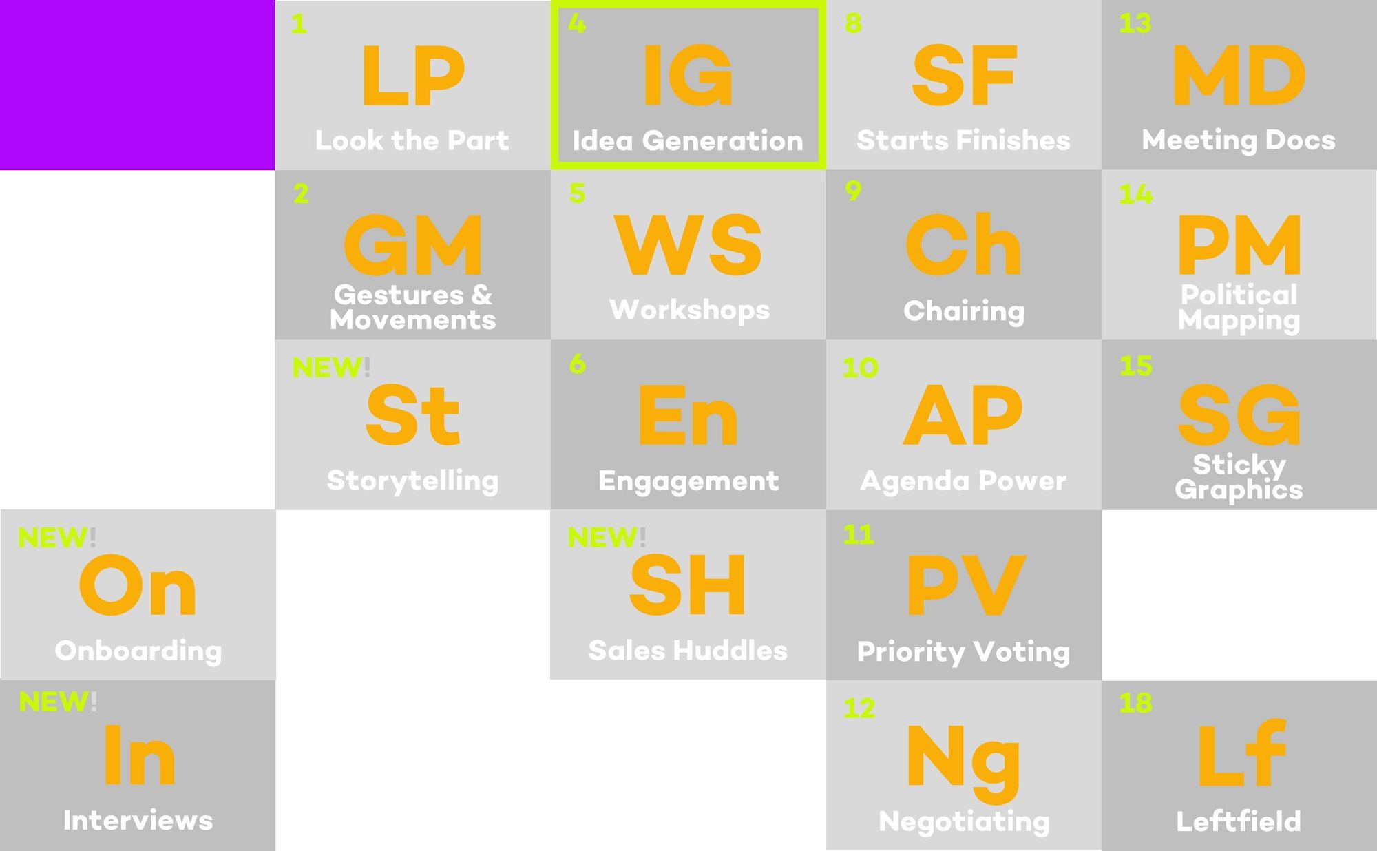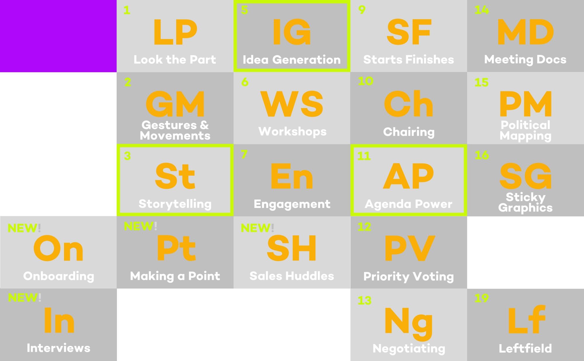 Modules are designed to fit 45-minute schedules. Where some like to go farther into a single topic, they are usually best split across two such sessions, often some time apart. The occasional exceptions to this include the longer-form like running a hub for async meetings, and the shorter-form such as 'huddle' styles.